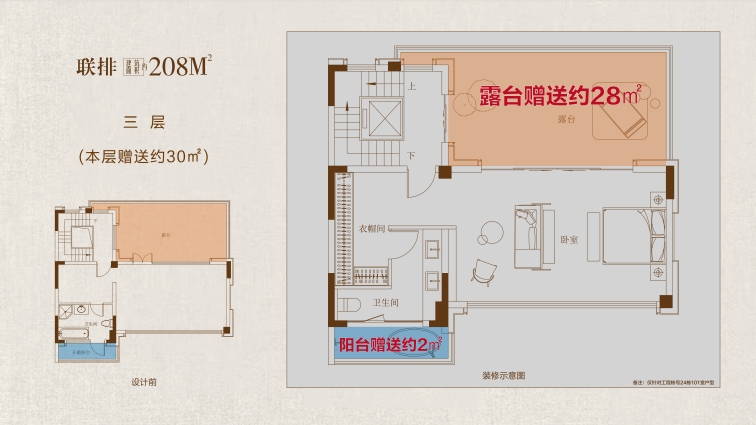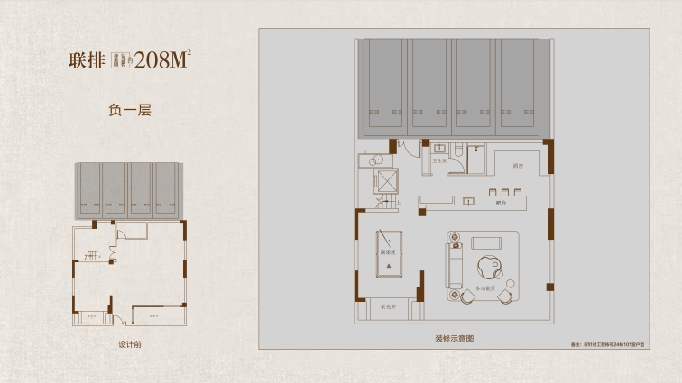 208戶型鑒賞: 大花園:戶均擁有約120㎡以上私屬庭院,可打造花園、茶室或親子活動(dòng)空間,延伸生活詩意 三開間:約10.7米南向面寬,首層層高約3.6 米,采光通風(fēng)俱佳,營(yíng)造朗闊起居格局。 高附贈(zèng):地下室面積約108㎡,約 5.5 米挑高,可隔成兩層,打造影音室、健身房、酒窖等多元功能區(qū);一層餐客廳挑空,可拓展約43㎡贈(zèng)送空間;二層、三層配備景觀露臺(tái),陽臺(tái)半贈(zèng)送;四層星空露臺(tái)全贈(zèng)送,解鎖生活多重想象。