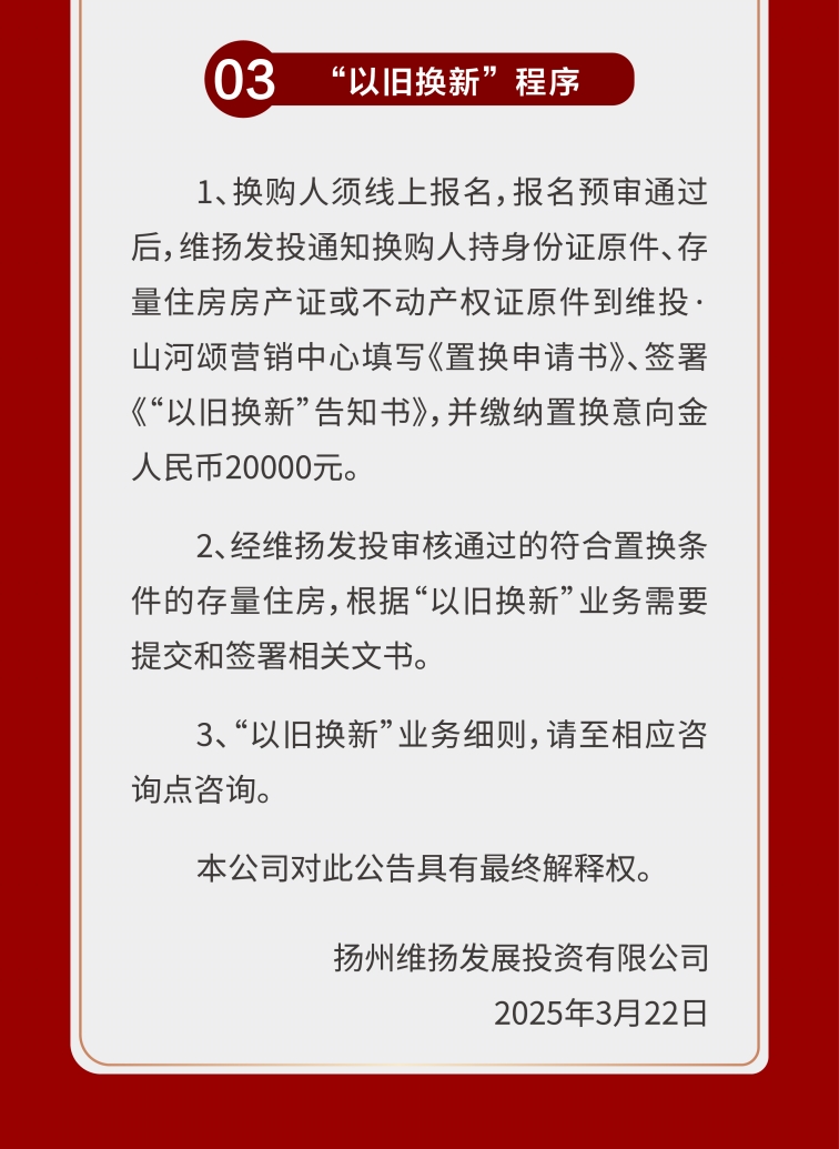 隨著培土奠基儀式的完成,維投·山河序正式駛?cè)虢ㄔO(shè)快車道,項(xiàng)目即將開售。結(jié)合維揚(yáng)發(fā)投推出的以舊換新3.0政策,多維度降低了改善門檻。項(xiàng)目以墅質(zhì)產(chǎn)品哲學(xué),呼應(yīng)城市奮斗者對(duì)品質(zhì)人居與生活理想的雙重追求,以國(guó)企匠心為揚(yáng)州人居史鐫刻濃墨重彩的“山河序章”。